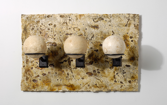 1999 16" x 25" x 11" plaster, fabric, resin, pigment, beeswax, forged iron
