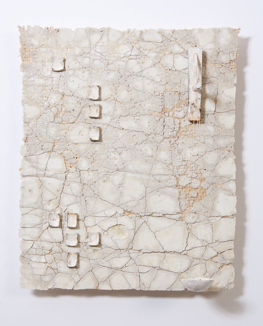 a moment in a white haze 2012, 20 x 16.5 x 5.5 inches; fabric, plaster, resin, forged iron with paint