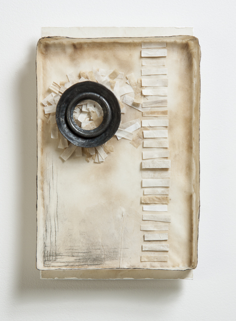 under the falling dark 2016, handmade abaca paper, forged and welded iron, graphite