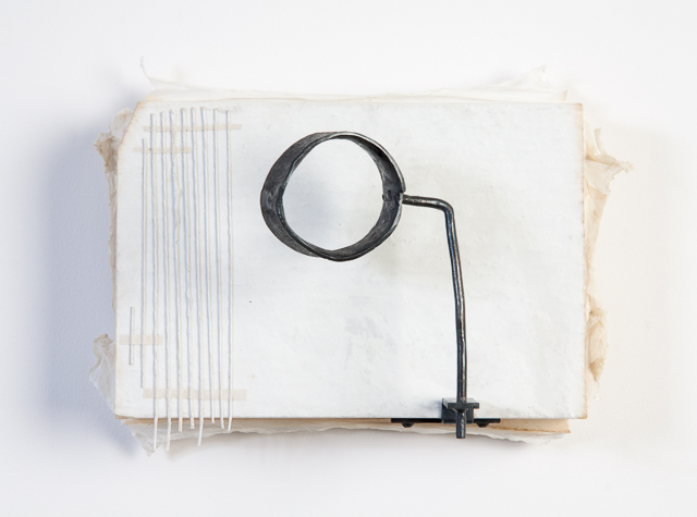 2015, 7.5 x 10 x 5 inches; abaca paper, iron, string