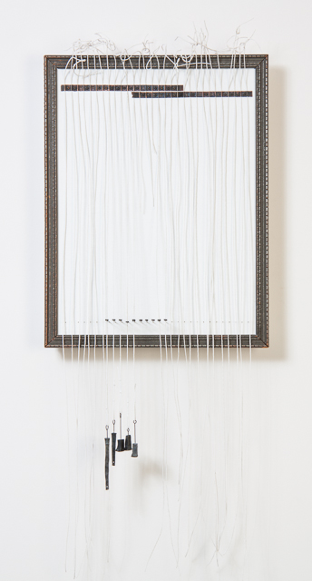 substantially insubstantial 2014, 34 x 13.25 x 3 inches; string, copper, iron, wire, wood, found frame