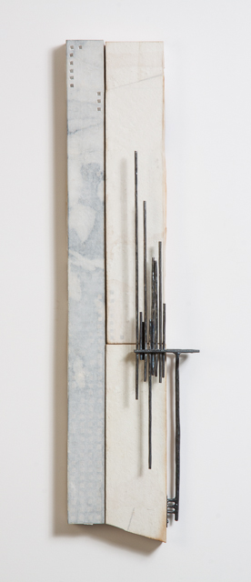 2015, 9 x 33.5 x 3 inches; abaca paper, iron, wood