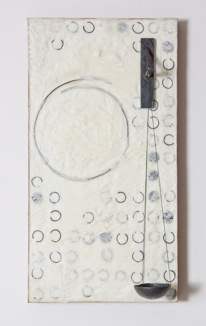 2010, 24.5 x 13 x 6 inches; encaustic, forged iron, string, wire, sandpaper