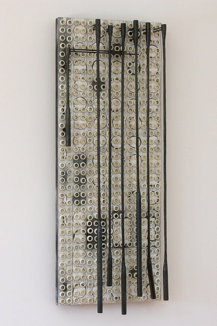 2006, 22 x 8 x 4 inches; forged iron, graphite, paper, porcelain